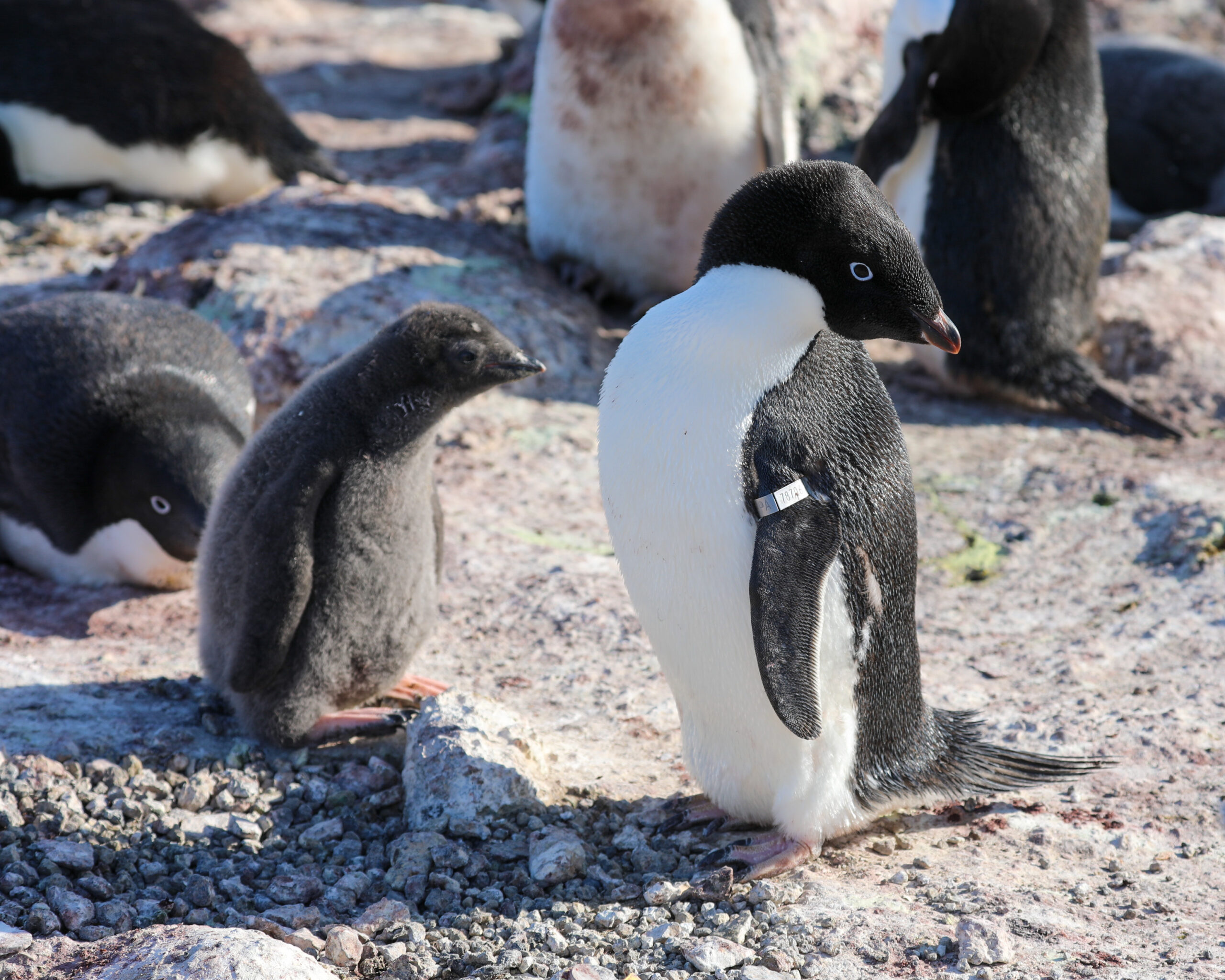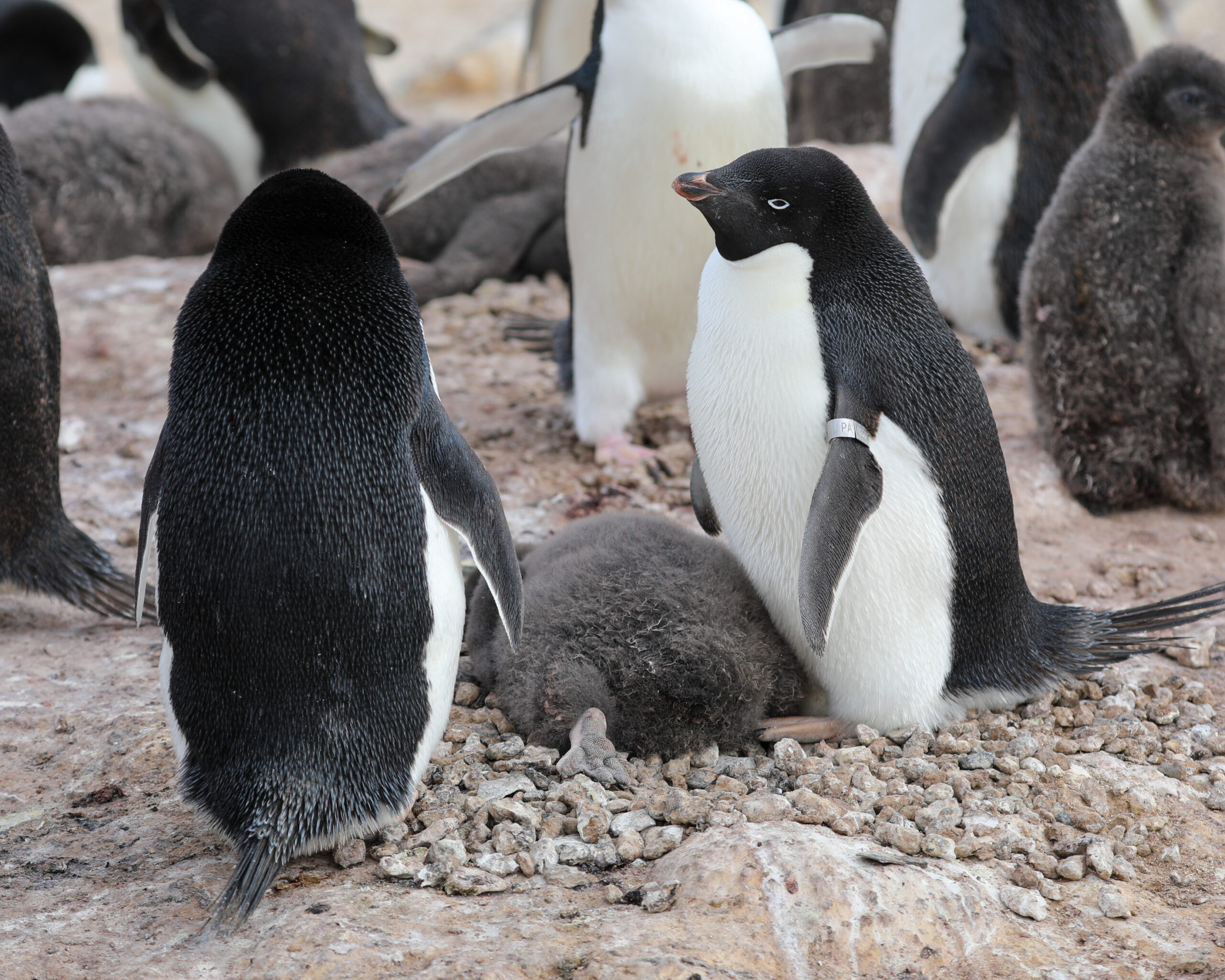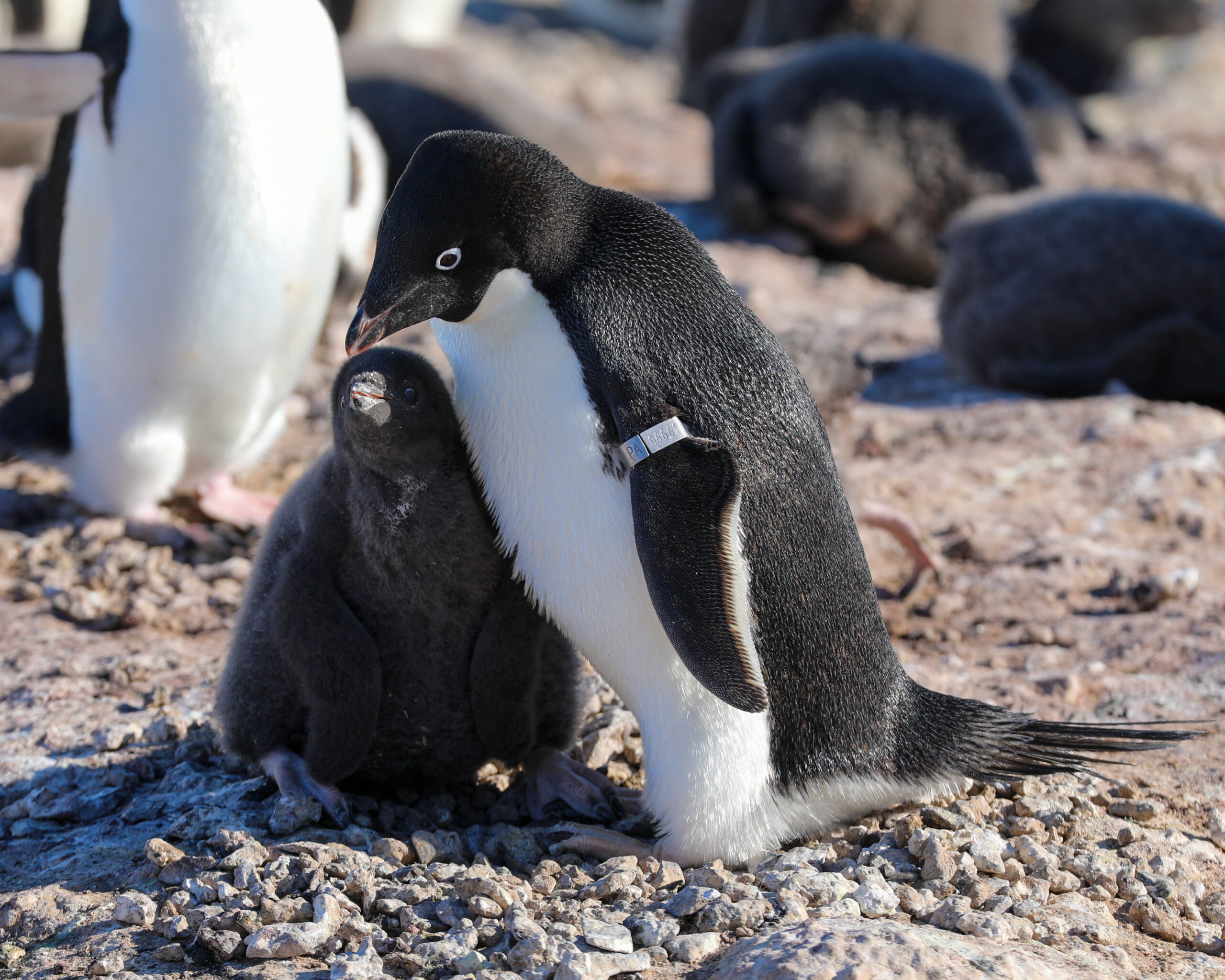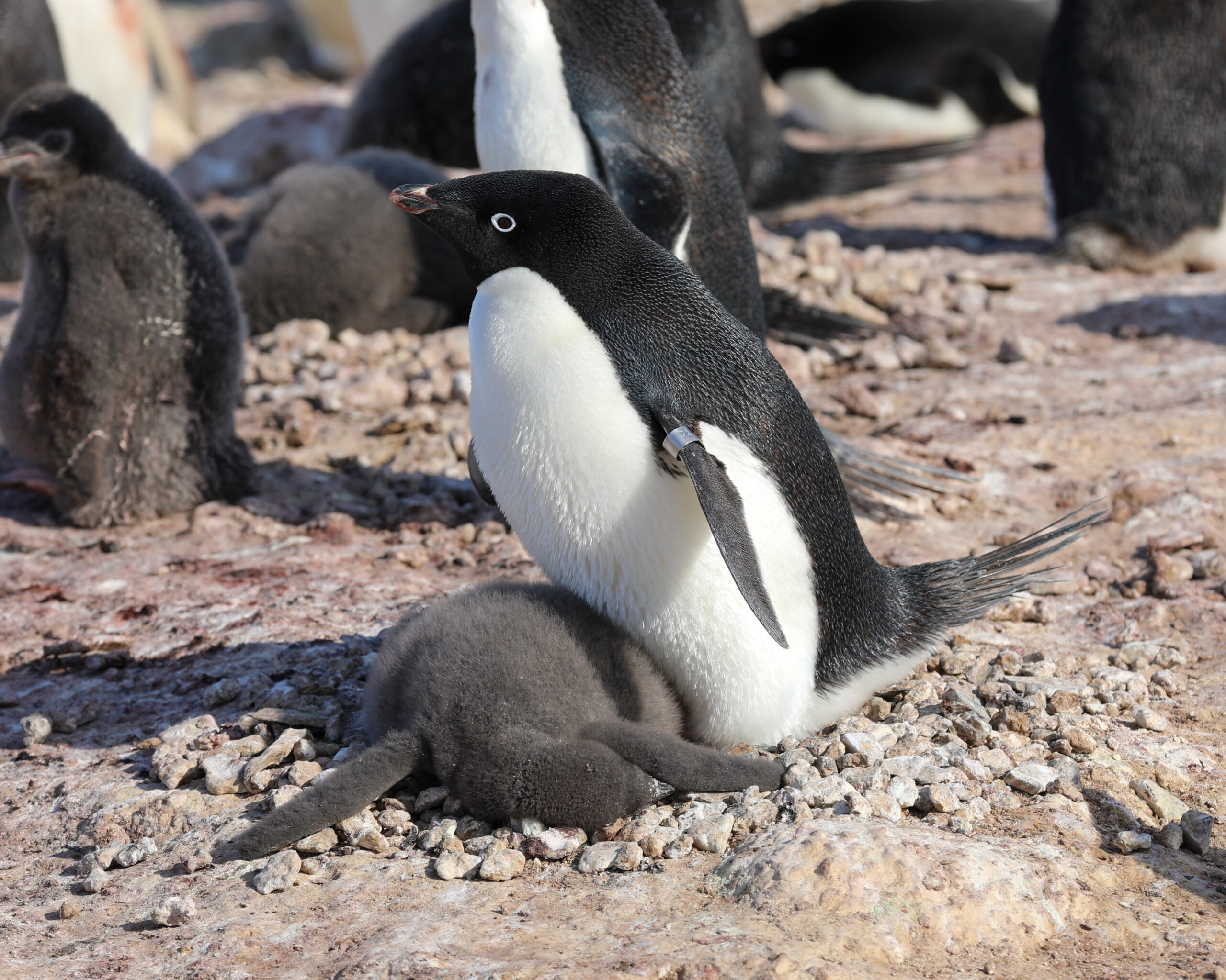 This female is 15 years old, and the oldest known-age bird in the Cape Royds colony currently. She is an experienced parent and has successfully raised six chicks with her mate.